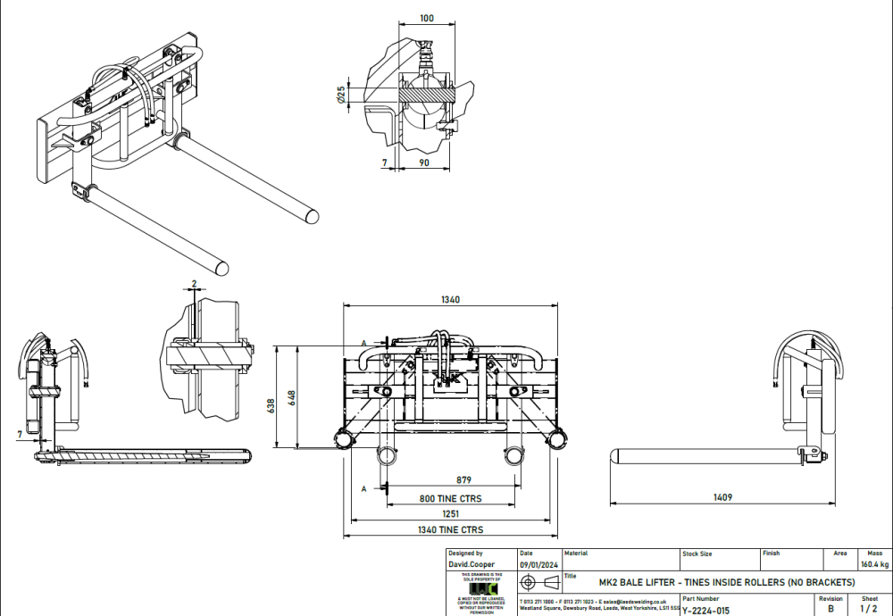 The LWC Bale Lifter is built for versatile bale handling, making it easy to transport wrapped round bales as well as round or square straw bales. Its removable rollers quickly reveal 1100mm-long tines for secure handling of unwrapped bales. A double-acting hydraulic ram provides smooth operation and ensures bales are carried safely and securely.